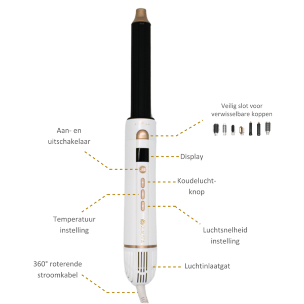 Blaast je haar weg? Verander dan de windrichting van het krulstuk door bovenaan het krulstuk te draaien.